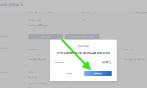 - To apply AI Enhancements, click the button for “Apply AI Enhancements”.