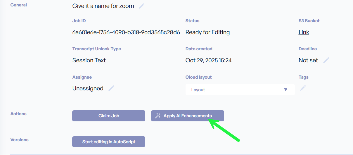 **NOTE** You may want to consider opening the session text in AutoScript Desktop and saving a version of the Session Text transcript before selecting to apply AI Enhancements. Once the enhancement is applied, it will overwrite the job files with the new versions. This will give you both versions of the transcript saved in ASD.