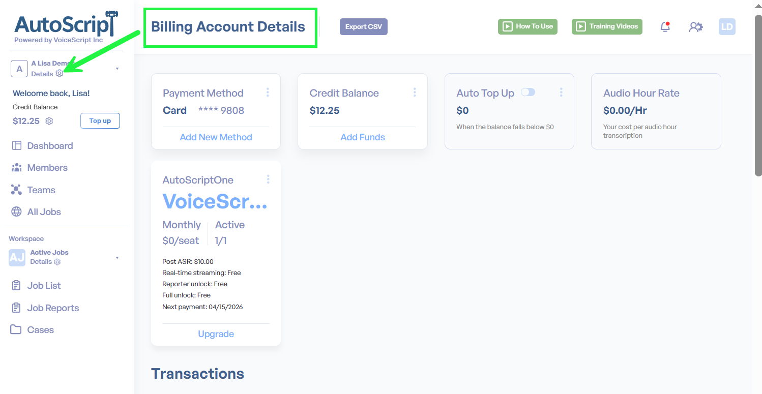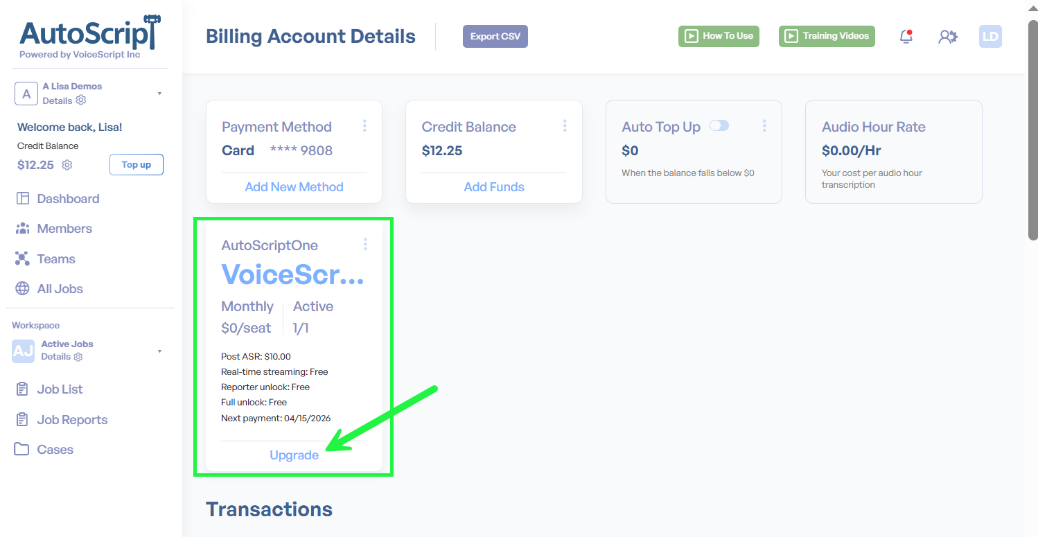 Click on the "Upgrade" option on the AutoScriptOne Subscription card