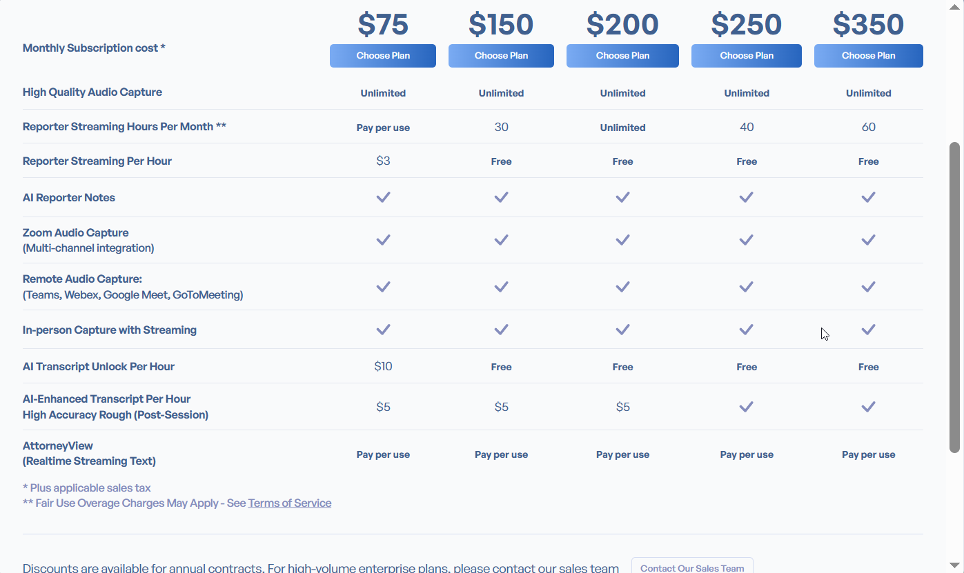 As of the writing of this article, there are five subscriptions offered for AutoScriptOne. This may help explain the differences. Flex Plan Best for reporters who only require high-quality audio recording and their annotations. Live speech to text ...