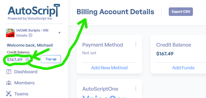 Next, click on the Credit Balance to open the Billing Account Details page.