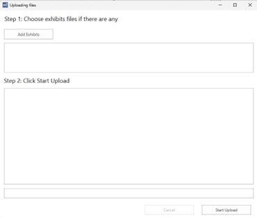 - To upload the transcript, click on “Finalize Session”. Click “Add Exhibits” and select the files you want to upload with your job. Then click “Start Upload”