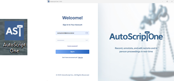 - After connecting to Zoom, open the AutoScriptOne Application and sign in with the email and password you set up for autoscript.ai