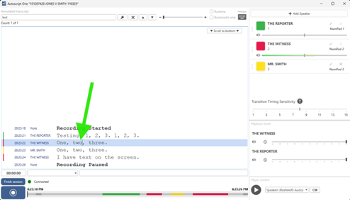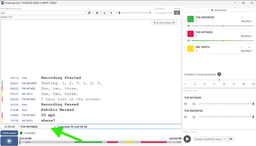 - In the event you need to do manual annotations when there is no text hitting the screen, you can use your number pad speaker hotkeys when you are clicked into the annotation box to select a speaker name and then type shorthand notes for that speaker turn and hit enter.