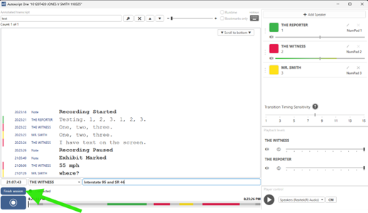 - Click on “Finalize Session” if you are ready to upload this job for processing to produce the transcript. **Note** Once the job is uploaded, you cannot make any additional edits to the transcript and upload again.
